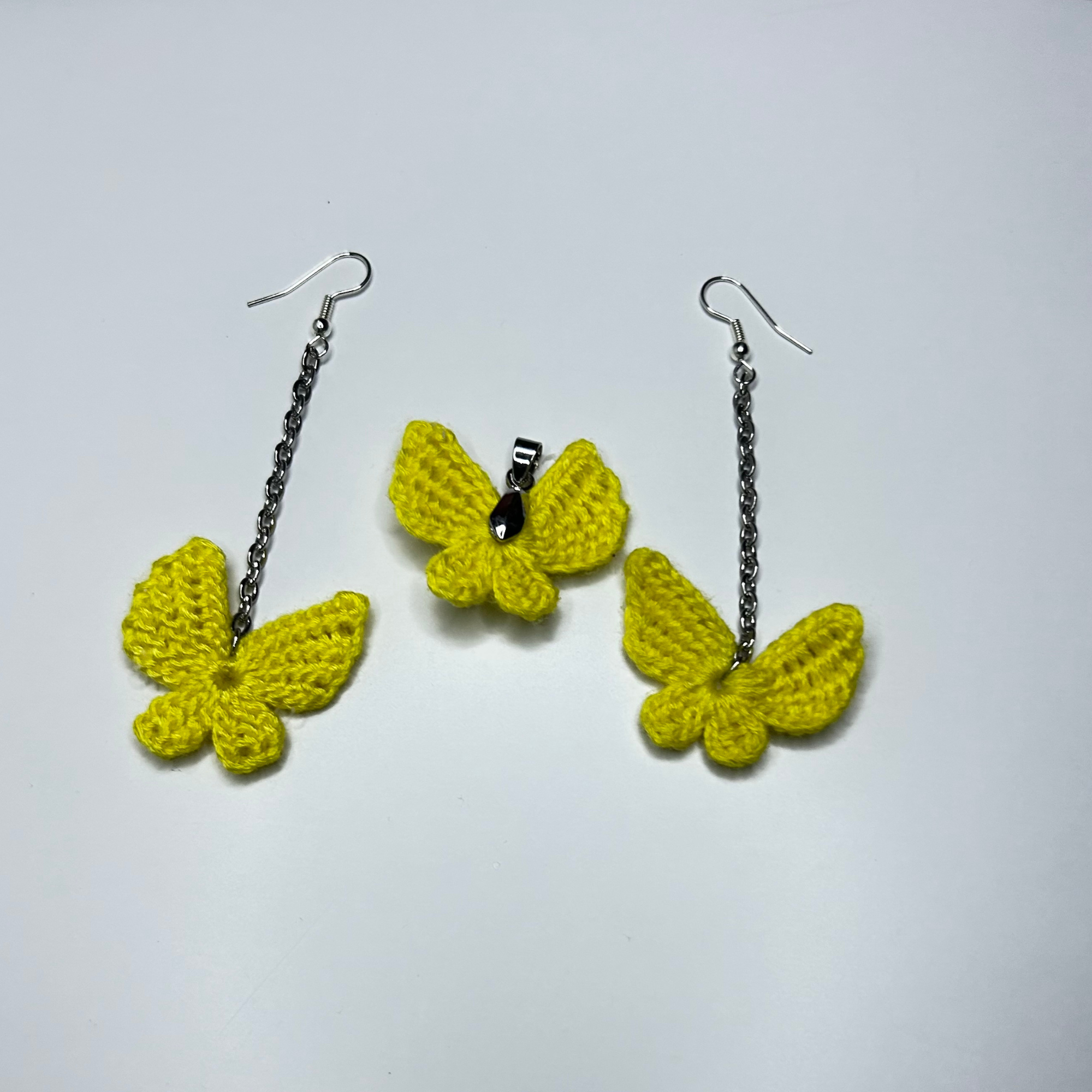 Butterfly Crochet Earrings are handmade statement earrings with bright crochet butterfly details and chain drops. Lightweight and eye-catching, they bring playful texture and color to everyday outfits.