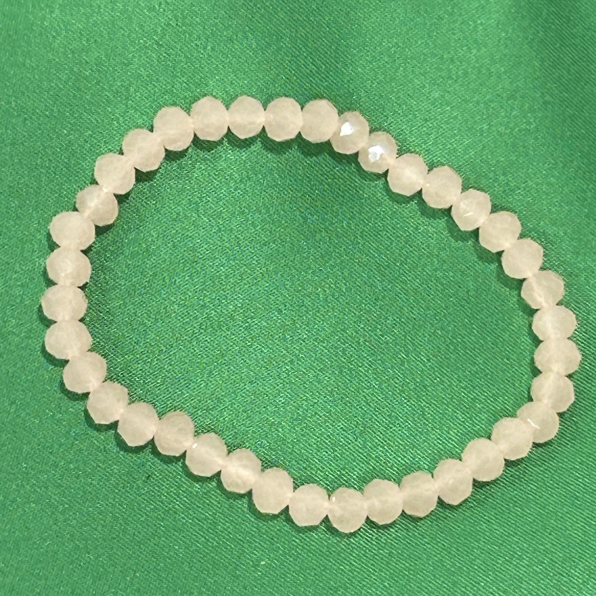 Elastic Bead Bracelet offers a soft neutral look with faceted beads and a flexible fit. Lightweight and easy to style, it works well on its own or stacked with other handmade bracelets.